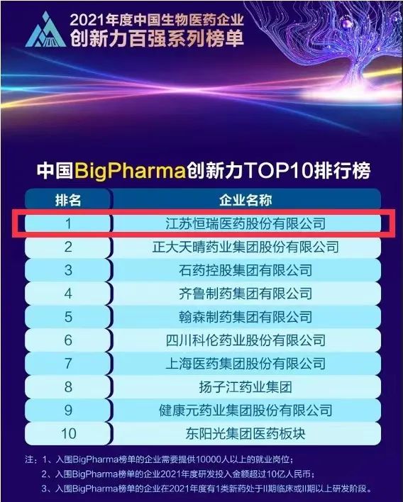 9月16日,由米内网主办的“2021年度中国生物医药企业创新力百强系列榜单”发布会在线上举办。DB真人医药继去年登顶“中国BigPharma企业创新力TOP10排行榜”后,今年再次名列该榜单首位。
